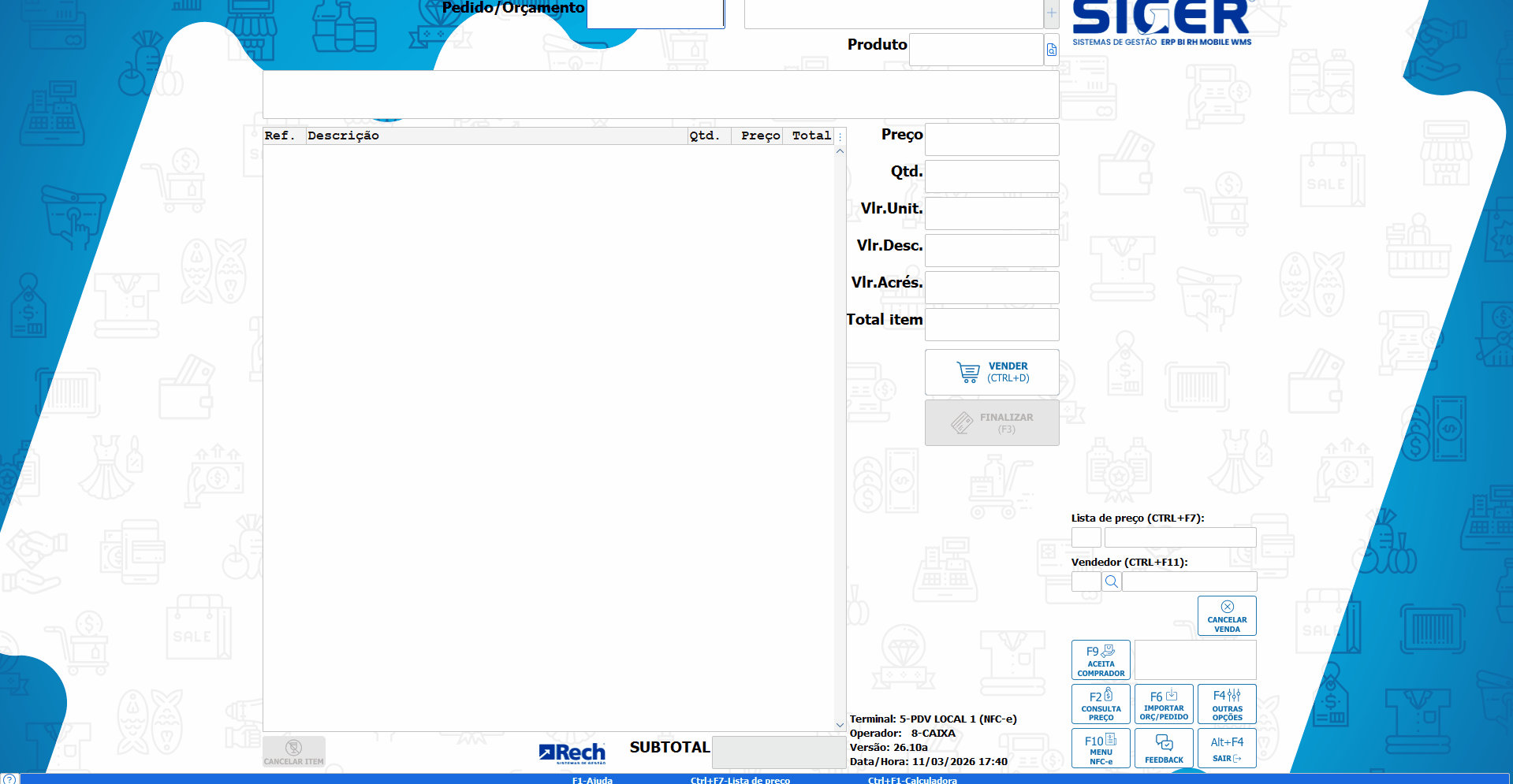 Com essa opção, é possível importar pedidos e orçamentos diretamente na tela do terminal de vendas.