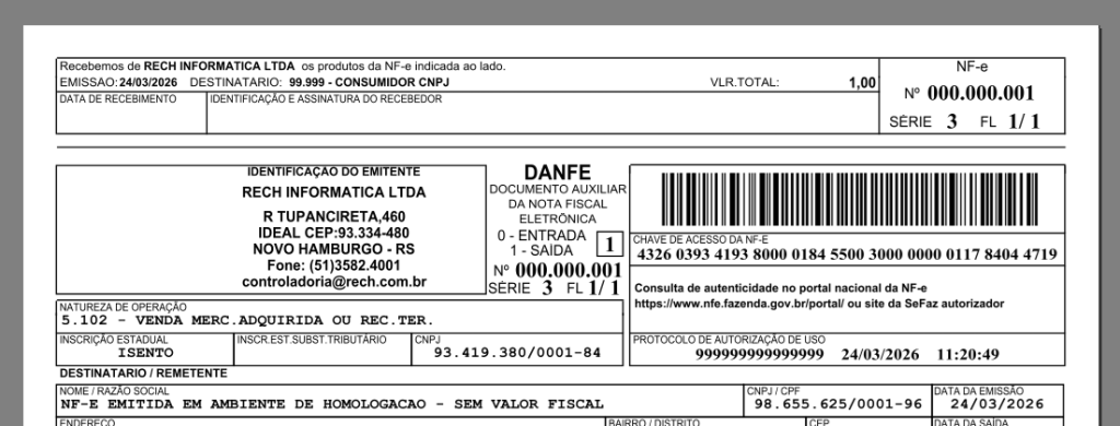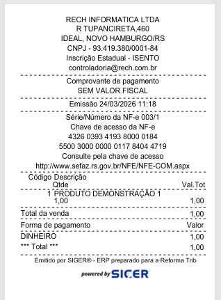 Essa é uma mudança de comportamento que pode causar dúvidas em terminais de venda que passarem a emitir NF-e nas operações do dia a dia. Confira o exemplo abaixo: