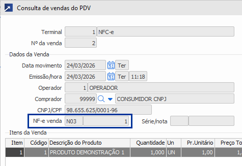 Em terminais que emitem apenas NFC-e o número da venda sempre será igual ao número da nota emitida. Já em terminais que agora podem emitir NF-e esse comportamento não ocorrerá mais, podendo o número da nota ser diferente do número da venda que originou a emissão.