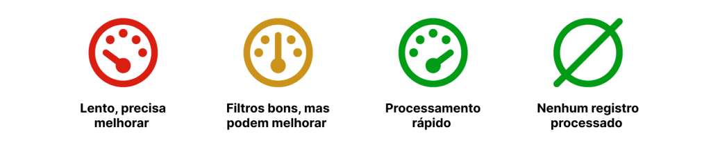 Seleções muito abertas podem fazer com que o desempenho seja afetado por conta da grande quantidade de registros filtrados. Por isso, um indicador de velocidade foi adicionado para simbolizar o custo de processamento da seleção atual.
