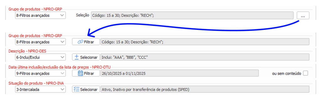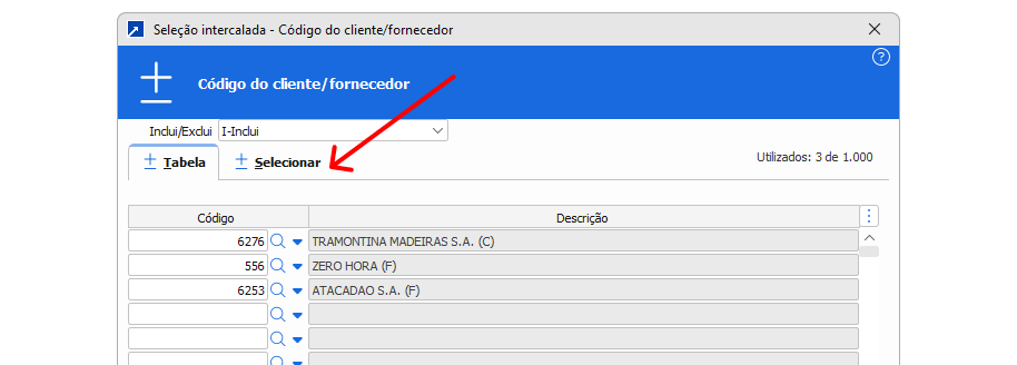 A janela que permite selecionar registros a incluir ou excluir no filtro teve a usabilidade aprimorada com novas opções de exportação e um design mais compacto.