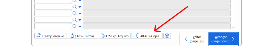 As opções de importação e exportação foram expandidas e receberam botões na parte inferior da janela. Agora, também foram adicionadas opções de copiar (Alt+F2) e colar (Alt+F3) a lista de registros a partir da área de transferência do computador. Essas funcionalidades devem acelerar o uso da rotina pelo usuário.