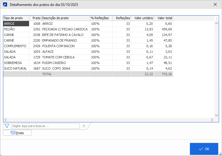 No prato do planejamento, o Percentual do prato é um fator multiplicador aplicado ao número de refeições do item do pedido, e serve para direcionar a produção para mais ou para menos conforme o consumo.