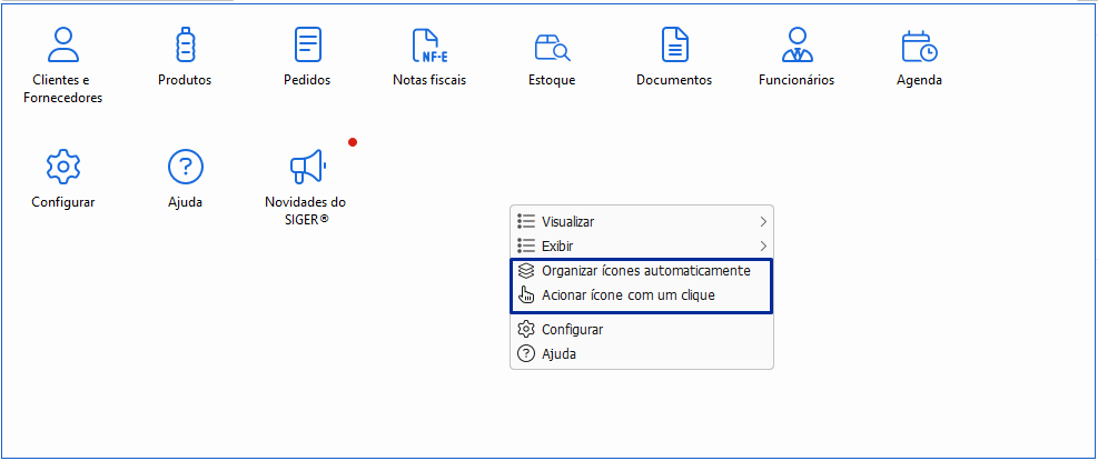 Acionar ícone com um clique: função desenvolvida para permitir o acionamento dos ícones com apenas um clique, otimizando a interação e eliminando etapas desnecessárias. Essa opção existe no sistema operacional Windows e foi disponibilizada também no painel de favoritos.