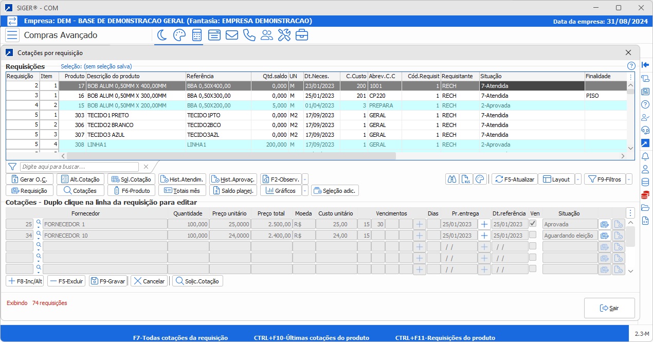 O módulo Controle Avançado de Compras do ERP SIGER® integra todas as etapas do processo de aquisição da requisição à ordem de compra com visibilidade centralizada, comparativos entre fornecedores e bloqueios configuráveis.