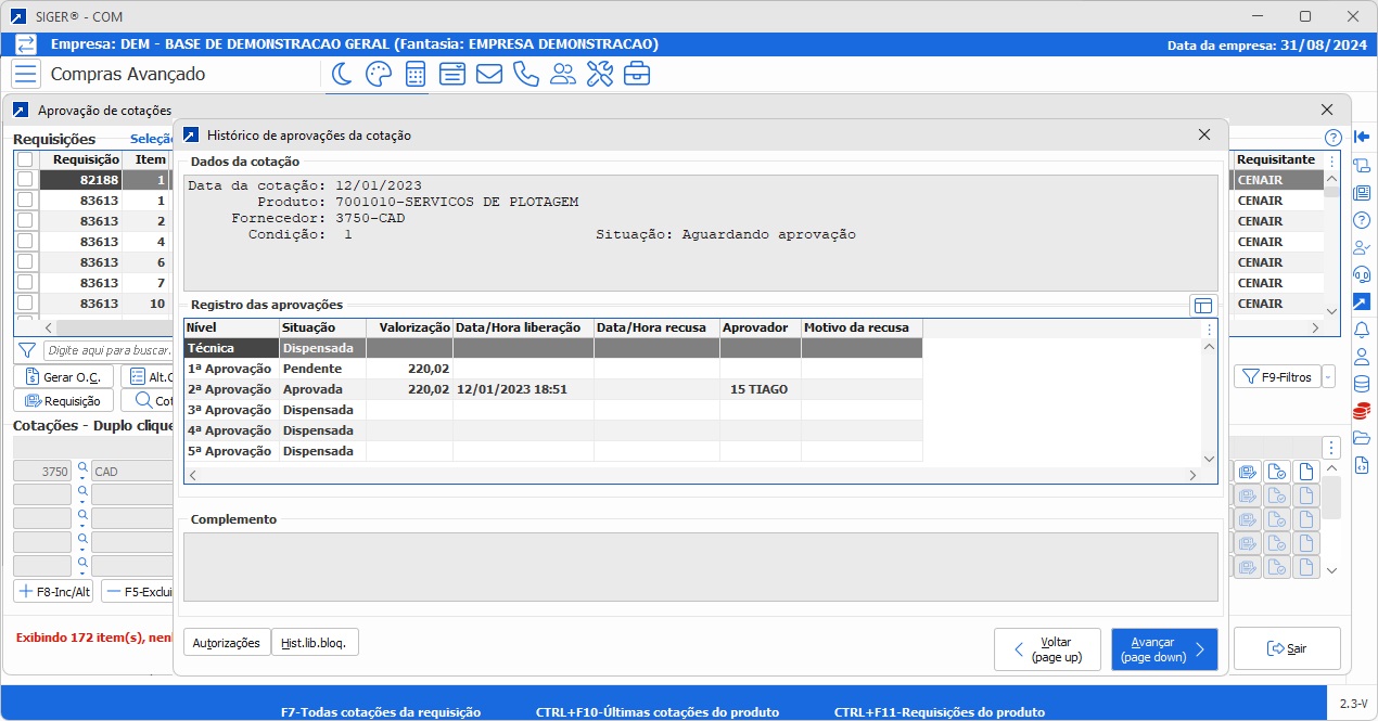 Aprovação configurável de cotações