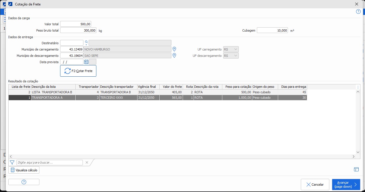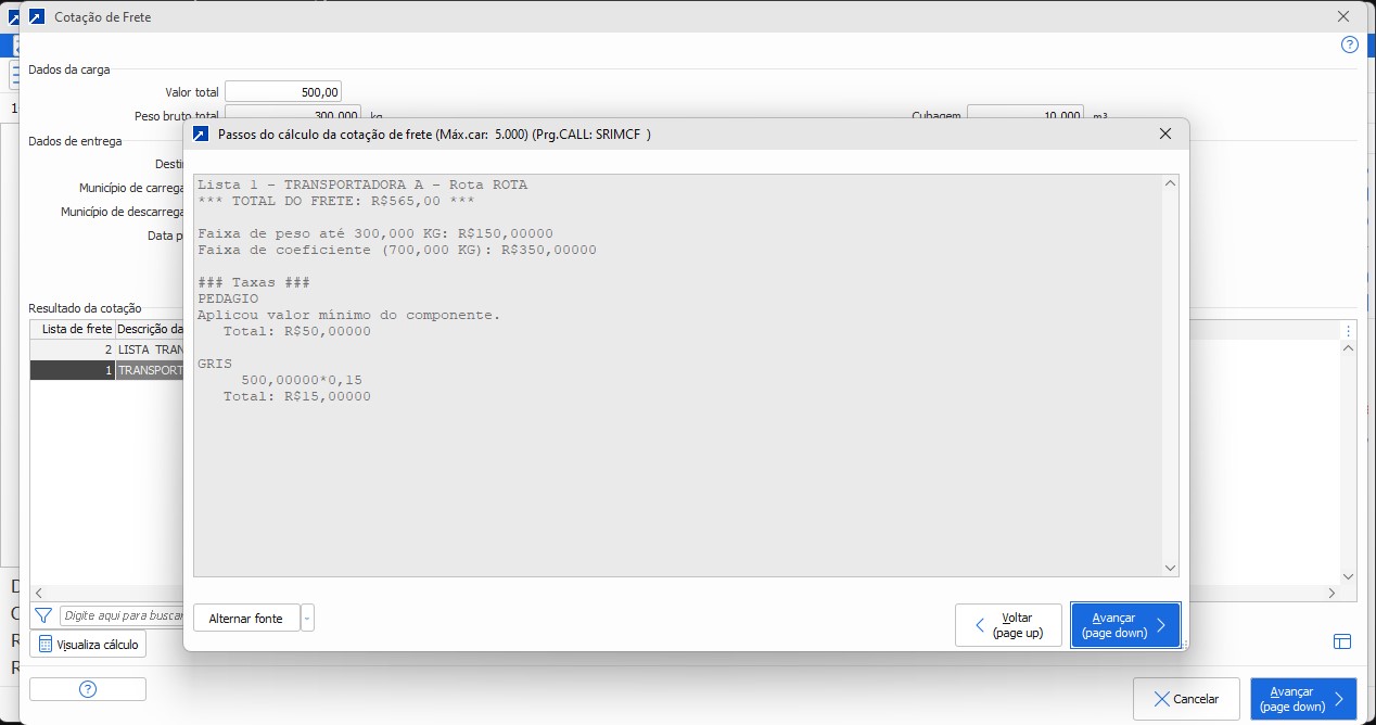 Inclua taxas adicionais como pedágio, ad valorem ou paletização para um custo mais preciso.