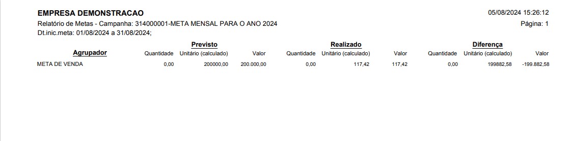 Visualize e imprima relatórios detalhados com o desempenho das metas frente aos objetivos.