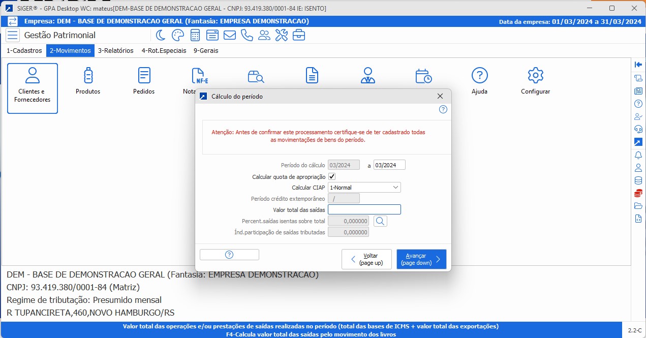 • Controle do CIAP, saldos a creditar e resumo de apropriação CIAP