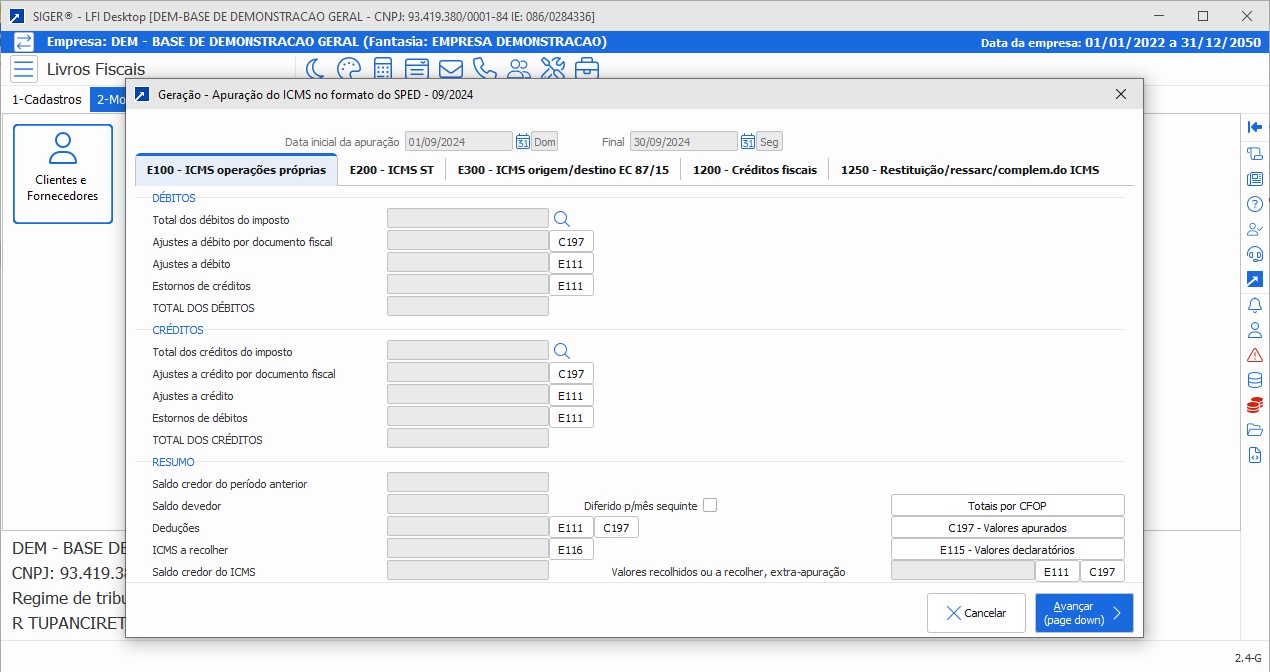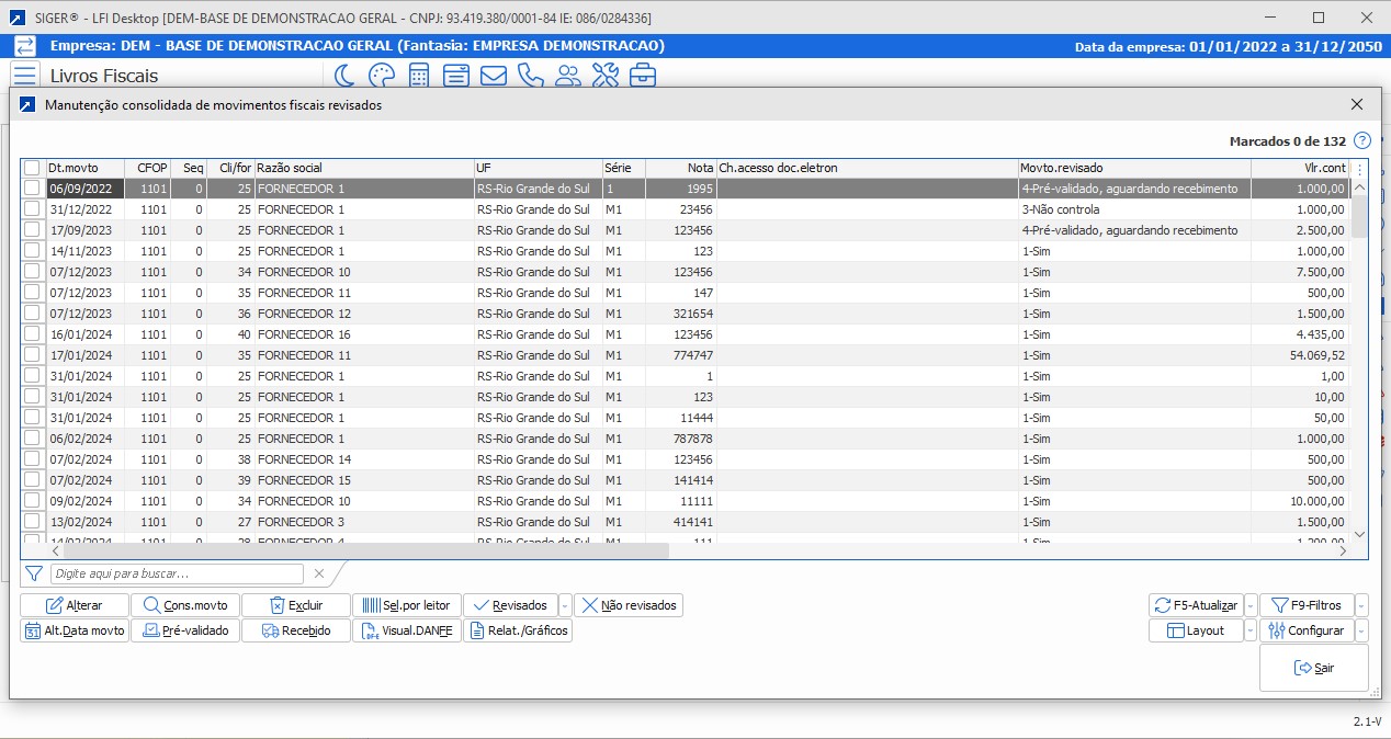 • Manutenção livre em qualquer período que não tenha sido apurada a geração de impostos, permitindo inclusão, alteração e exclusão de movimentos