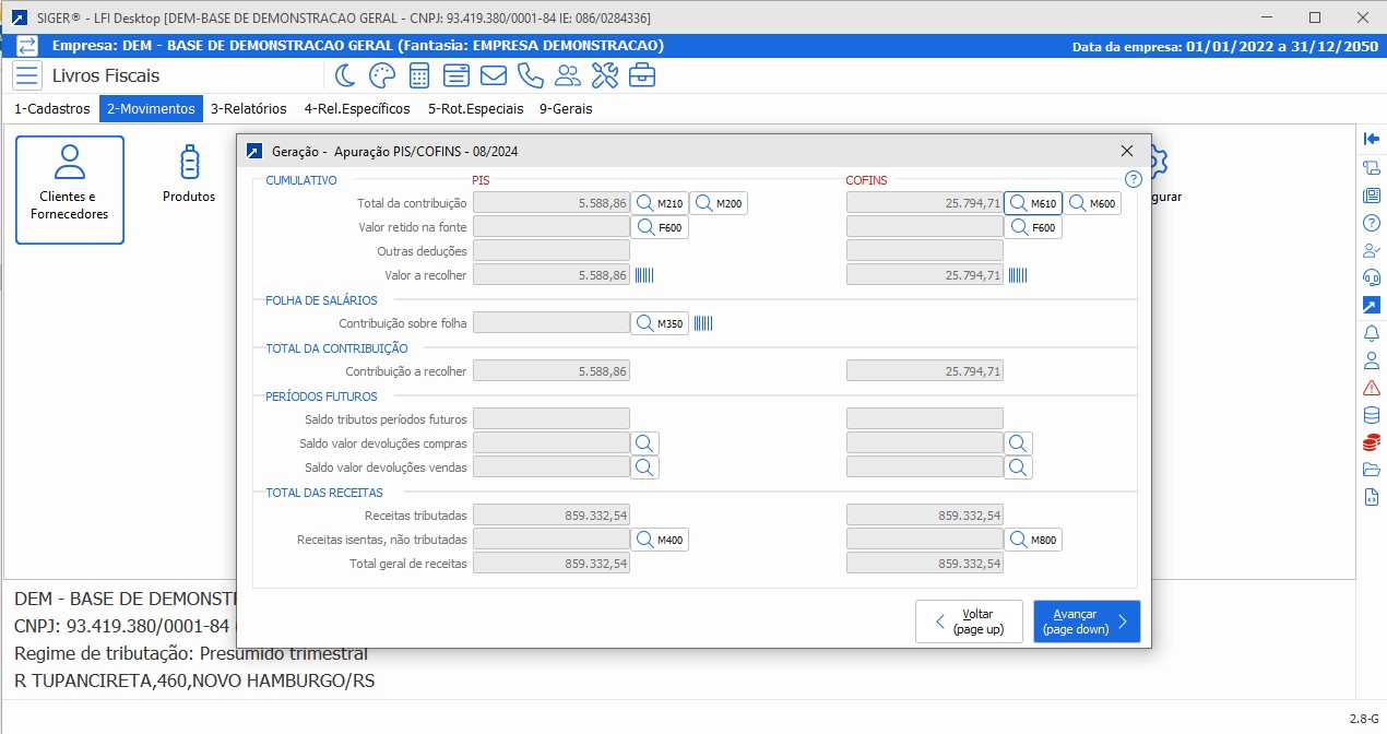 • Apuração automática do crédito do PIS/COFINS, com relatório demonstrativo