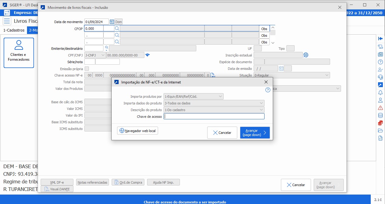 • Importação automática de movimentos de outro estabelecimento que possuam o Sistema de Livros Fiscais ou Vendas e Faturamento do SIGER®