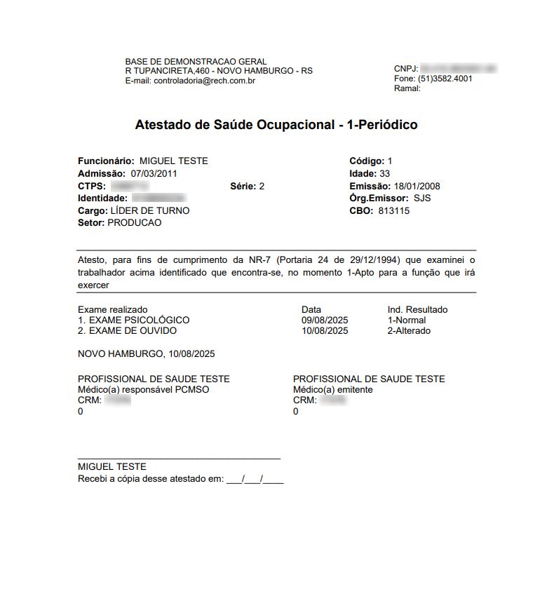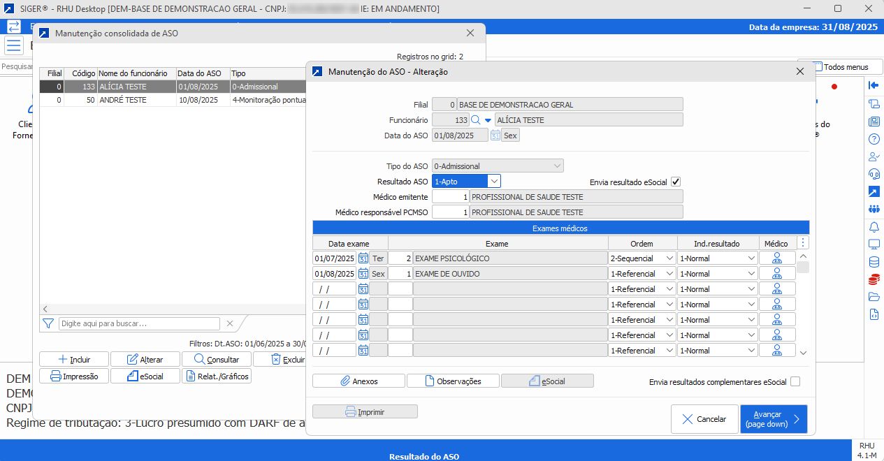 • Manutenção de Atestado de Saúde Ocupacional (ASO)