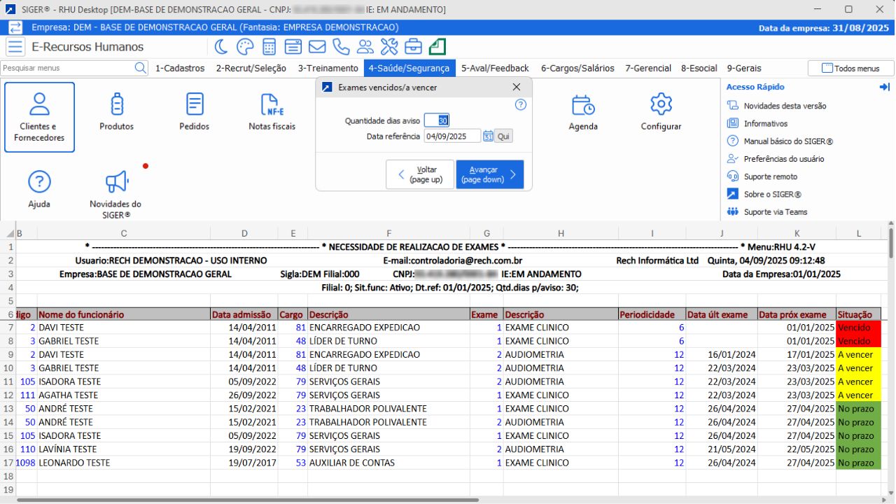 • Definição de periodicidade de exame por cargo ou faixa etária