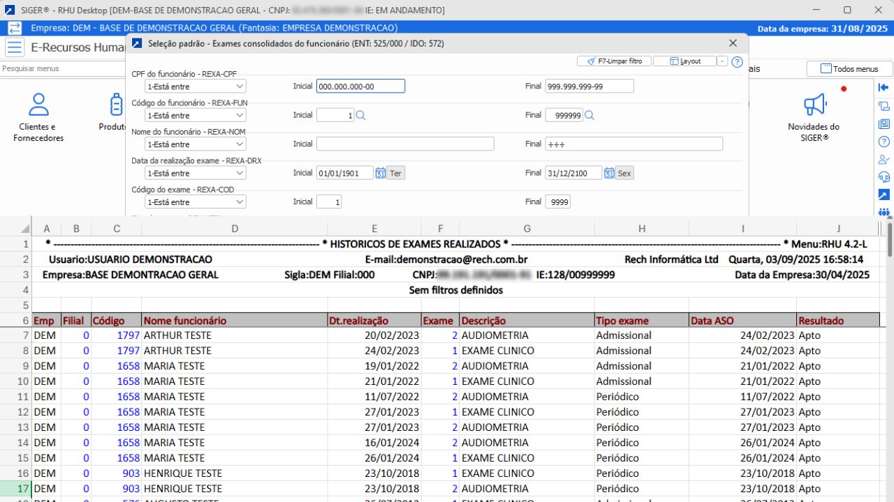 Facilite o controle de exames, atestados e laudos com um sistema prático e integrado. Desde o cadastro de tipos de exame até relatórios por vencimento, o módulo organiza todas as exigências legais da saúde ocupacional com flexibilidade e economia de tempo.