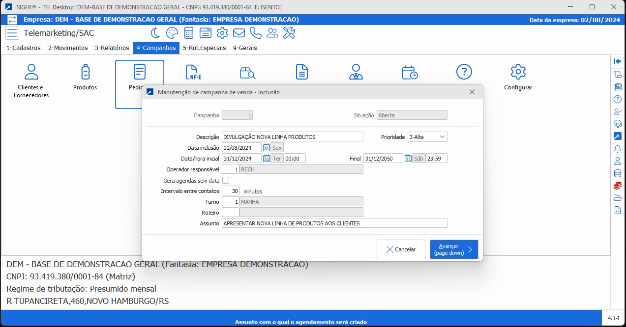 Crie, acompanhe e otimize campanhas comerciais com agendamento automático e controle total de execução.
