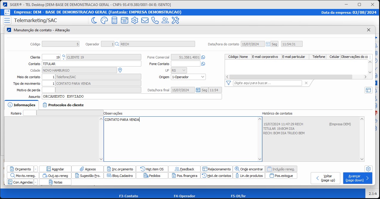 Visualização completa de contatos e agendamentos