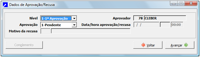 O SIGER® irá sugerir automaticamente a opção posterior à última que tiver sido aprovada, desde que o usuário tenha alçada suficiente para realizar a sua aprovação ou recusa.