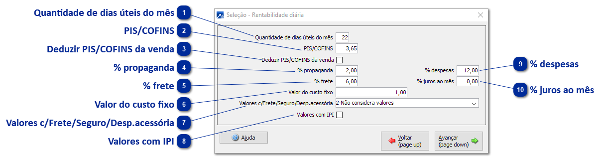 Informe a quantidade de dias úteis do mês correspondente ao período a ser analisado. Independente do dia do mês em que o relatório está sendo executado, deve-se informar a quantidade de dias úteis total do mês para que a projeção seja feita corretamente.