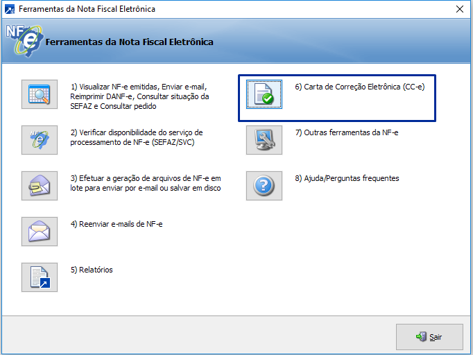 Utilizado para emitir uma nova CC-e. Irá solicitar a NF-e na qual será vinculada a carta, e em seguida aceitará o texto da CC-e.