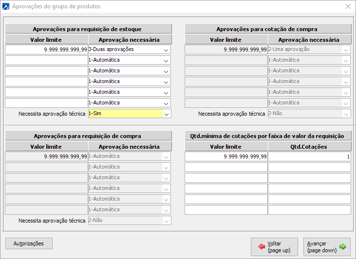 Para todos os pontos (produto, subgrupo e grupo) há a tela de aprovações: + Saiba mais