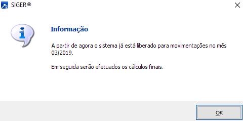 Ao final do processo o SIGER® notifica que o sistema está liberado para movimentações.