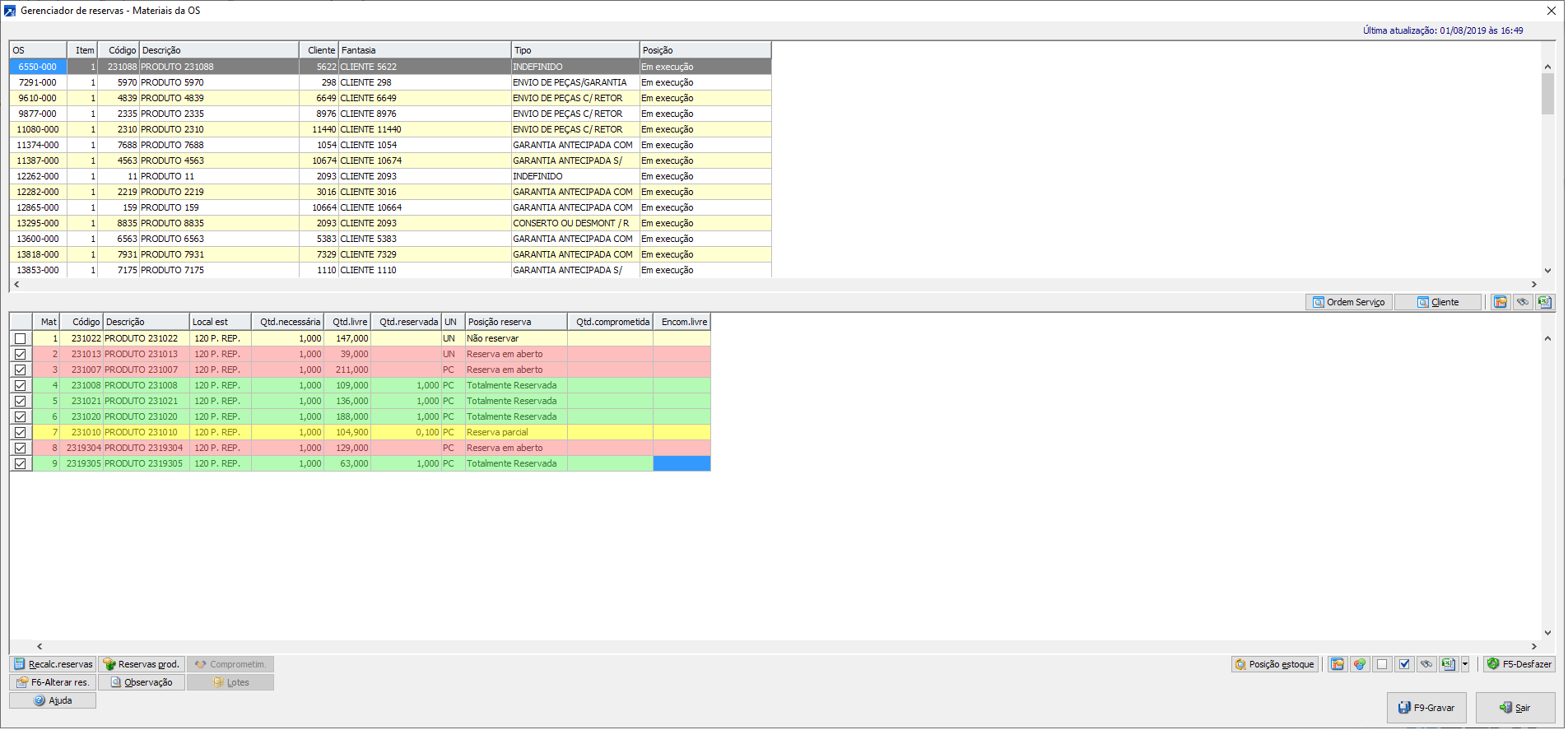 Para reservar totalmente o material da OS é necessário que a quantidade livre seja igual ou maior que sua necessidade