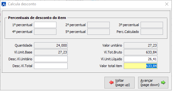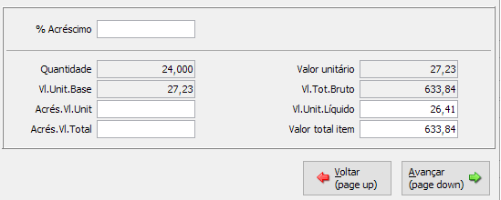 Valor total do item (unitário * quantidade - descontos + acréscimos).