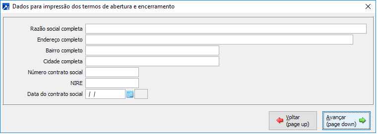 Dados para emissão dos termos de abertura e encerramento dos termos.