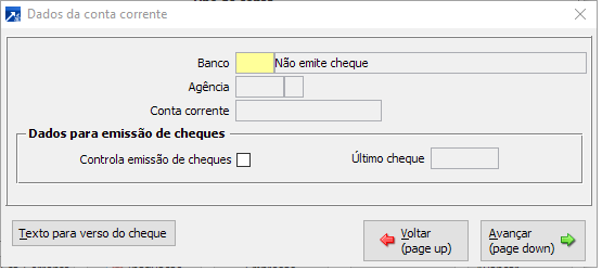 Botão com os dados bancários da conta que serão utilizados na rotina de importação de extrato bancário e para emissão de cheques.