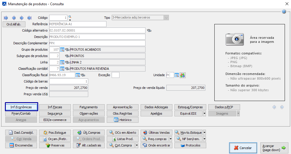 Ou seja: Usuário acessou menu 1.6.A (por exemplo) indicando um produto e depois clicando em <Inf.Econômicas>