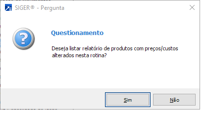 Existe no SIGER® uma rotina que recalcula o preço de reposição, custo de aquisição e custo gerencial.