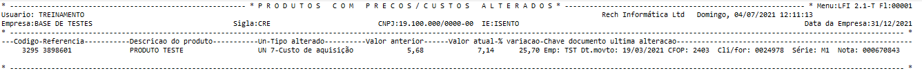 Algumas empresas, inclusive, utilizam essa rotina com frequência pois optam pela não atualização do preço de reposição automaticamente via lançamento da nota. Assim podendo efetuar a rotina manualmente e conferindo produto a produto quais foram as alterações neste valor.