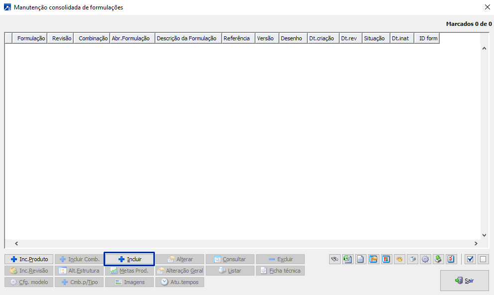 Para incluir uma formulação nova, primeiro se certifique que existe um cadastro de produto para ser associado a esta formulação.