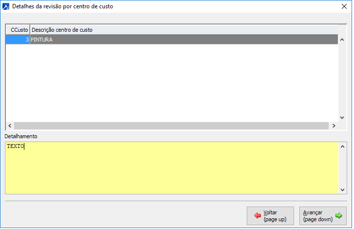 Já os botões servem para alterar a ordem dos centros de custo (ou seja: colocar um processo antes do outro, etc)