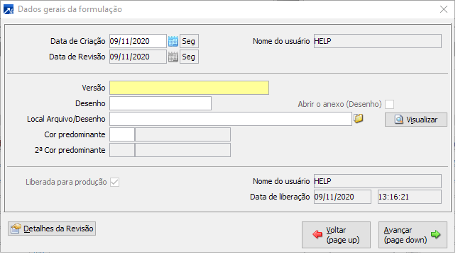 O objetivo da revisão é possibilitar a alteração da formulação sem perder seu histórico. As formulações podem ser vinculadas a outras entidades, como Ordem de Produção, Pedidos, entre outras e sua alteração sem o uso da revisão irá inviabilizar a consulta da estrutura exata da formulação utilizada naquele momento.