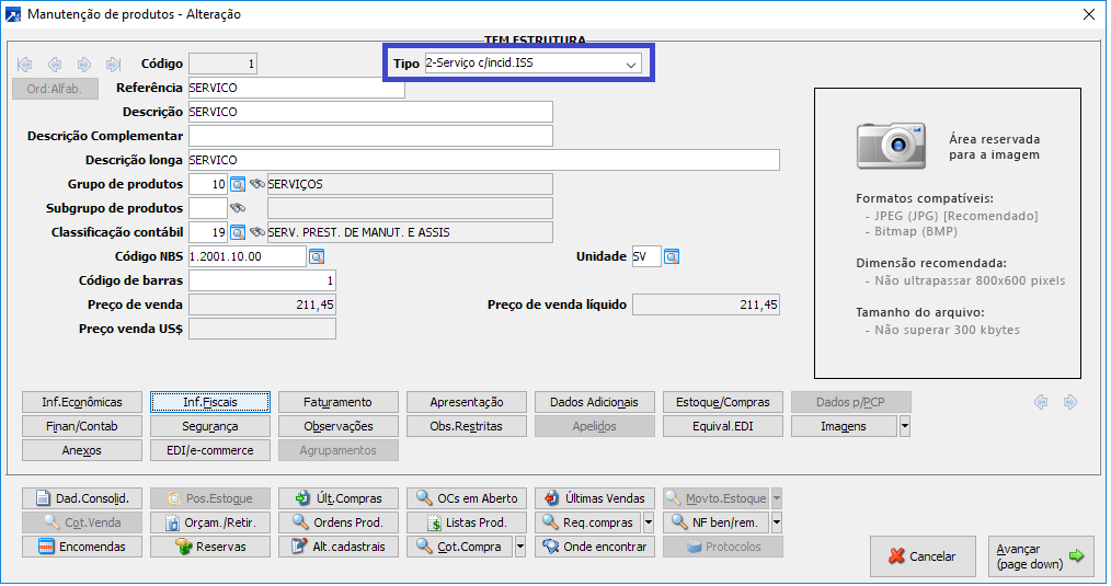 Para os "produtos" definidos com o Tipo "2-Serviço c/incid.ISS".