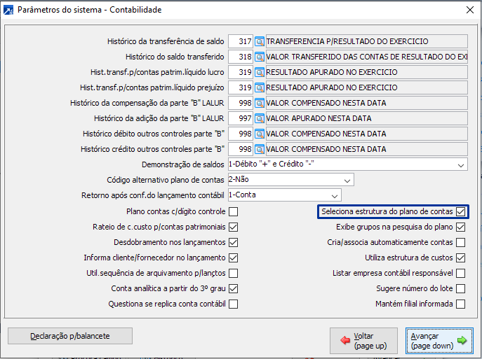 Configurações para Criação do Plano de Contas