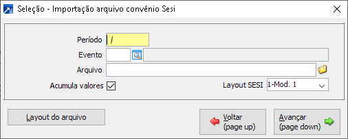 Será necessário indicar o período da importação e também o evento que será lançado os valores de desconto na folha de pagamento dos funcionários.
