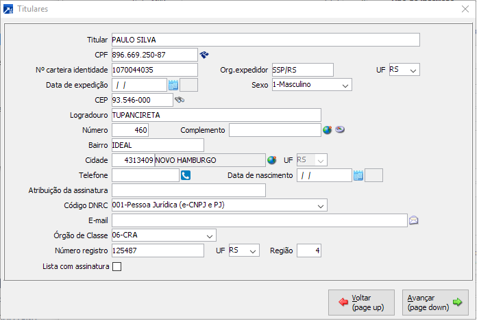 Incluir os dados do Sócio administrador, responsável, que assina pela Empresa. Abaixo figura ilustrativa do cadastro.
