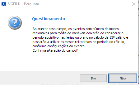 Marcar quando queres que SIGER® calcule as variáveis desconsiderando o período aquisitivo e utilizando as variáveis dos meses anteriores ao calculo. Leia atentamente o quadro abaixo.
