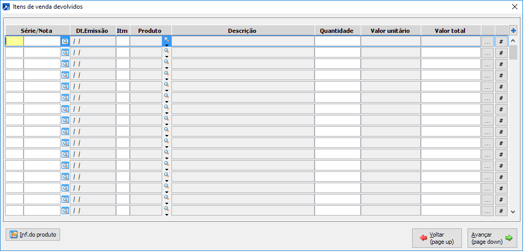 Após indicar o fornecedor na tela inicial para devoluções parciais, é necessário indicar as notas dos itens que estão sendo devolvidos: