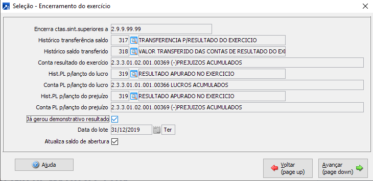 Se deixar marcado o campo "Atualiza saldo de abertura" será atualizado o saldo para o ano seguinte.