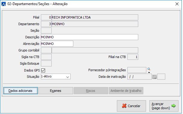 Utilizar para inativar o departamento incluindo a data desejada no campo.