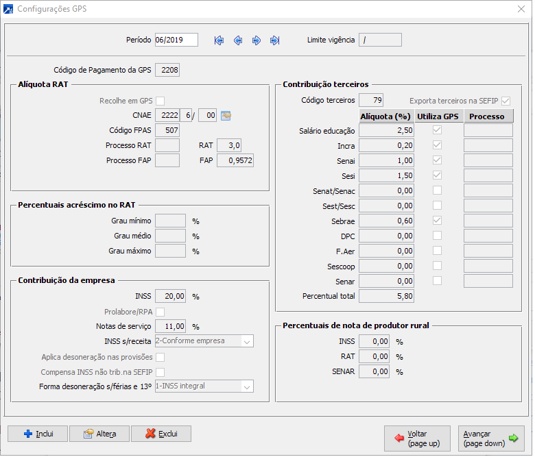 Na aba "GPS por período", deves incluir uma nova competência e informar os dados para a geração da GPS especifica para o departamento. Importante verificar o código de pagamento correto de acordo com a obra e ou serviço e demais campos, sempre observando o que diz na linha amarela.