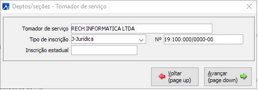 Na aba "Tomador de serviço" também deve ser preenchida com os dados do tomador, se o tomador é a própria empresa, deves informar os dados da empresa.