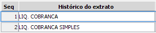 Ambos os históricos irão usar as configurações do histórico "LIQ. COBRANCA", pois contém esta literal em ambos os movimentos. Mesmo que haja um histórico que também se encaixe na segunda linha irá usar o primeiro registro encontrado. Se for necessário fazer uma configuração mais específica esta deve estar em uma sequência anterior (conforme situação 3).