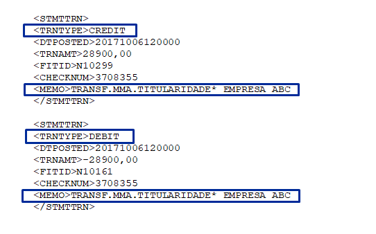 Aqui temos dois lançamentos do extrato com históricos diferentes: