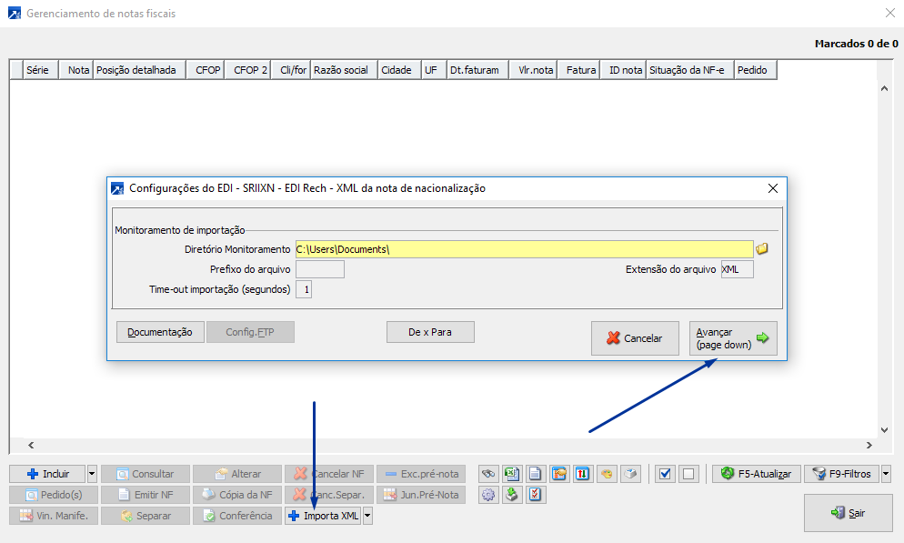 Uma vez configurado o "De/Para" poderá ser importado o arquivo.