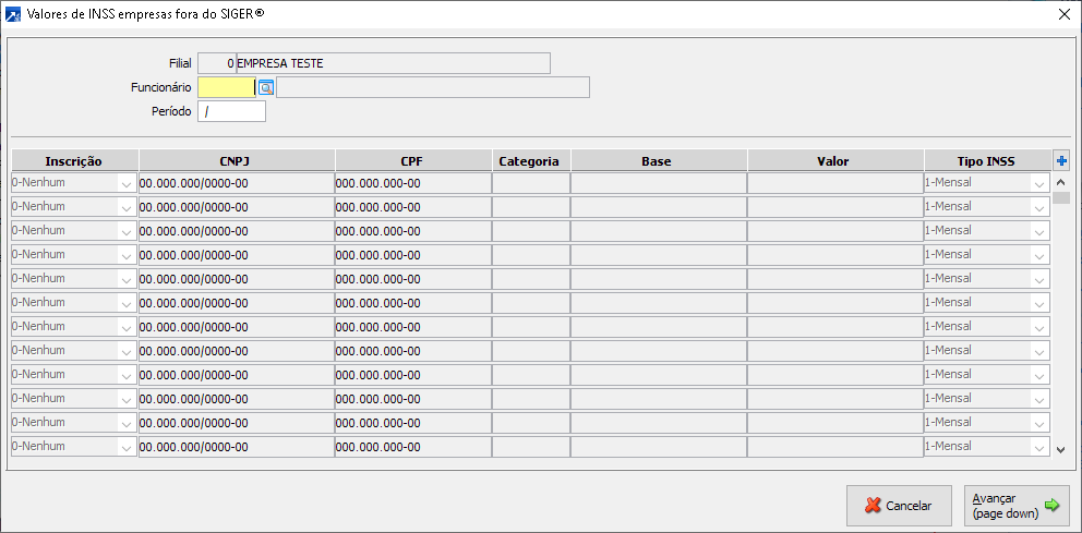 FPA MENU 2.2-A utlizando para a inclusão/alteração referente a valores de INSS das empresas fora do SIGER®.